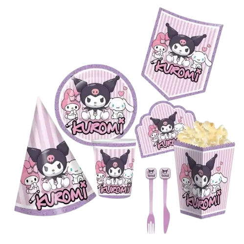 این محصول شامل بشقاب، لیوان، ظرف پاپ کورن، ریسه، چنگال، کلاه و کارت دعوت است که روی تمامی آنها تم تولد کرومی و ملودی طراحی شده و قابل ارسال به سراسر کشور میباشد.